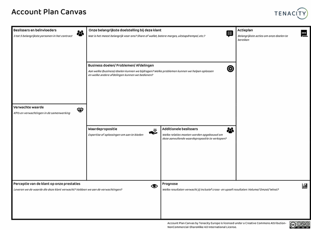Zoals je misschien weet, werken we veel met een instrument dat we het Account Plan Canvas noemen (via deze link gratis te downloaden onderaan onze downloadpagina).